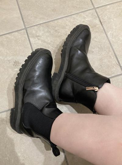 足汗で蒸れてしっとりです♡靴を脱ぐと熱気と臭いが広がります♡ぜひお試しください♡
